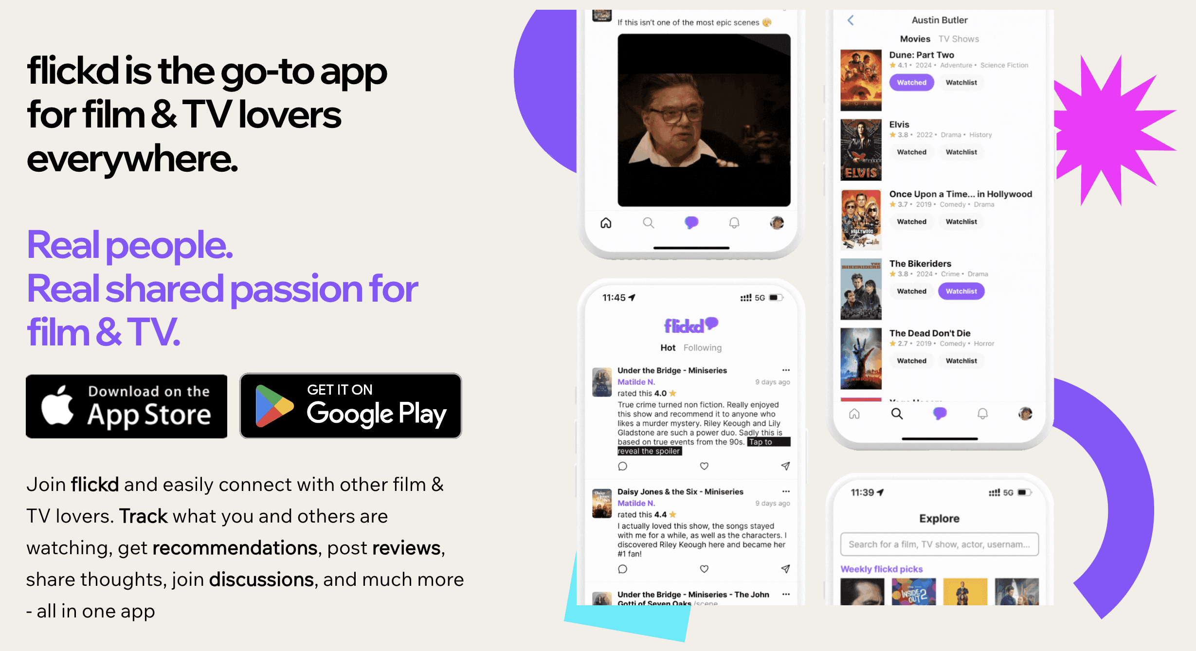 flickd is a platform designed for film and TV lovers to connect, track what they’re watching, discuss their favorite shows and movies, and build a community around entertainment. The app allows users to create personalized watchlists, follow friends and genre experts, post thoughts and ratings, and engage in real-time discussions.